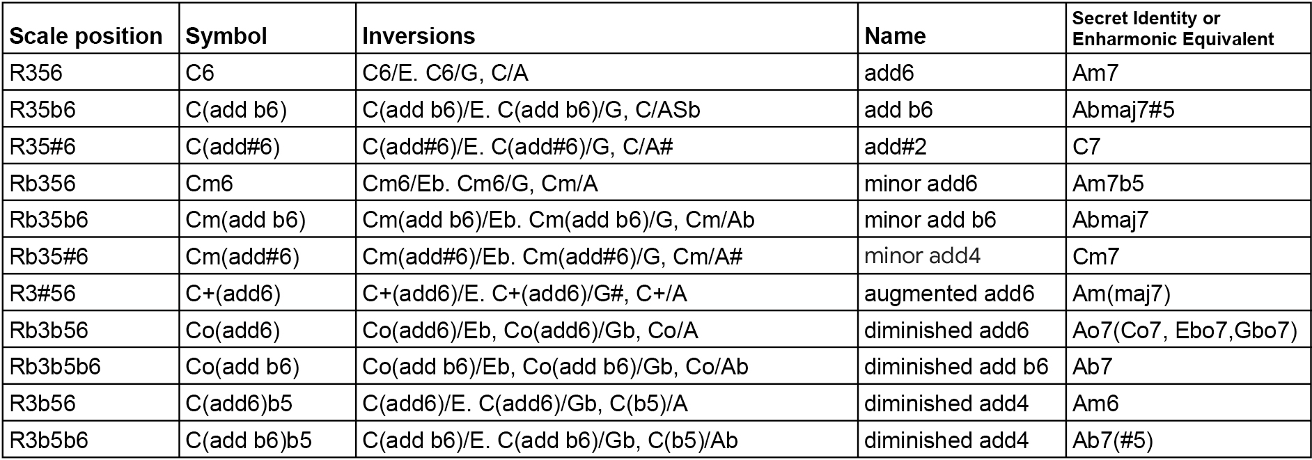 Sixth chords (R356, etc.) from their scale position