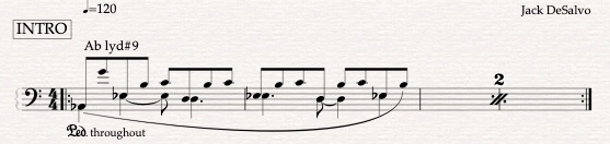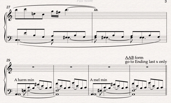 Four more bars of Ab lyd#9 occur before the A section repeats.